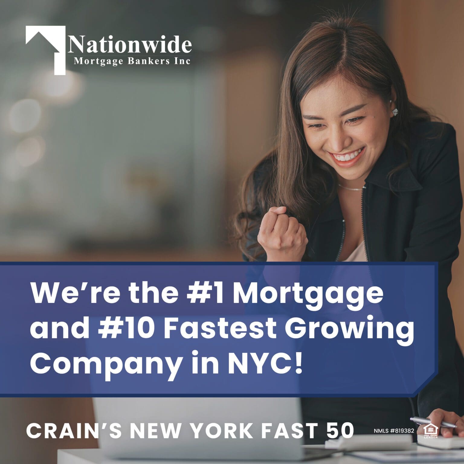 We’re proud to announce that Nationwide Mortgage Bankers, Inc., has been named the #1 Mortgage and #10 Fastest Growing Company in New York City by Crain’s New York Business’ Fast 50 for 2022!